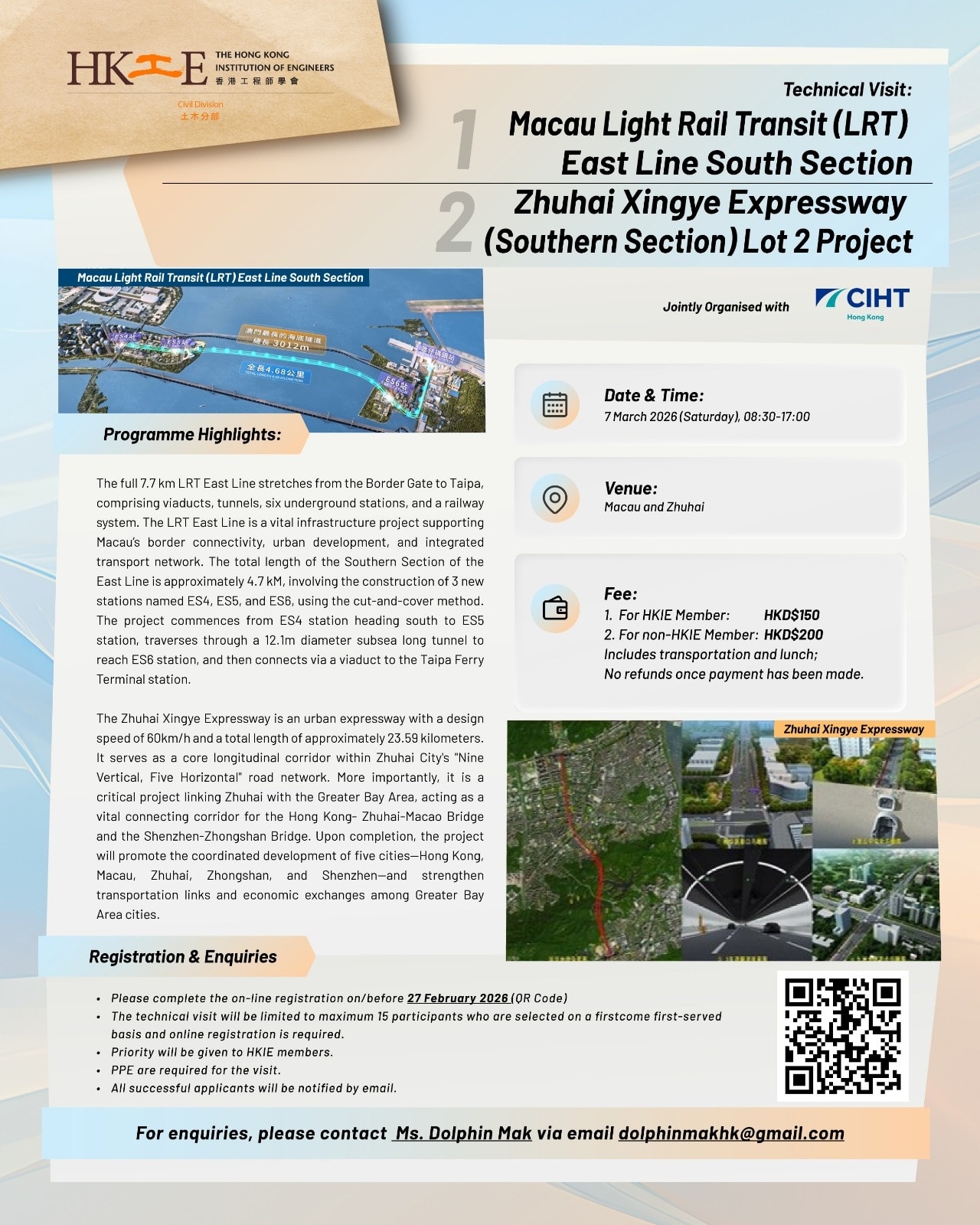 Technical Visit: Macau LRT East Line South Section & Zhuhai Xingye Expressway (Southern Section) Lot 2 Project